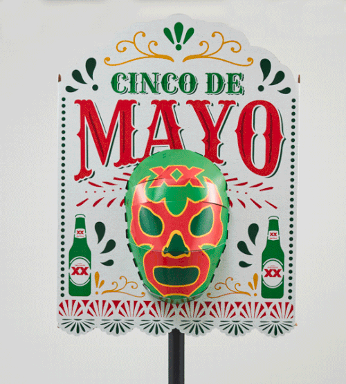 Client wanted Dos Equis’ Cinco de Mayo mascot: The luchador mask to be prominent icon in retail displays. From concept sketch to final construction; this was an amazing project to work and see come to life